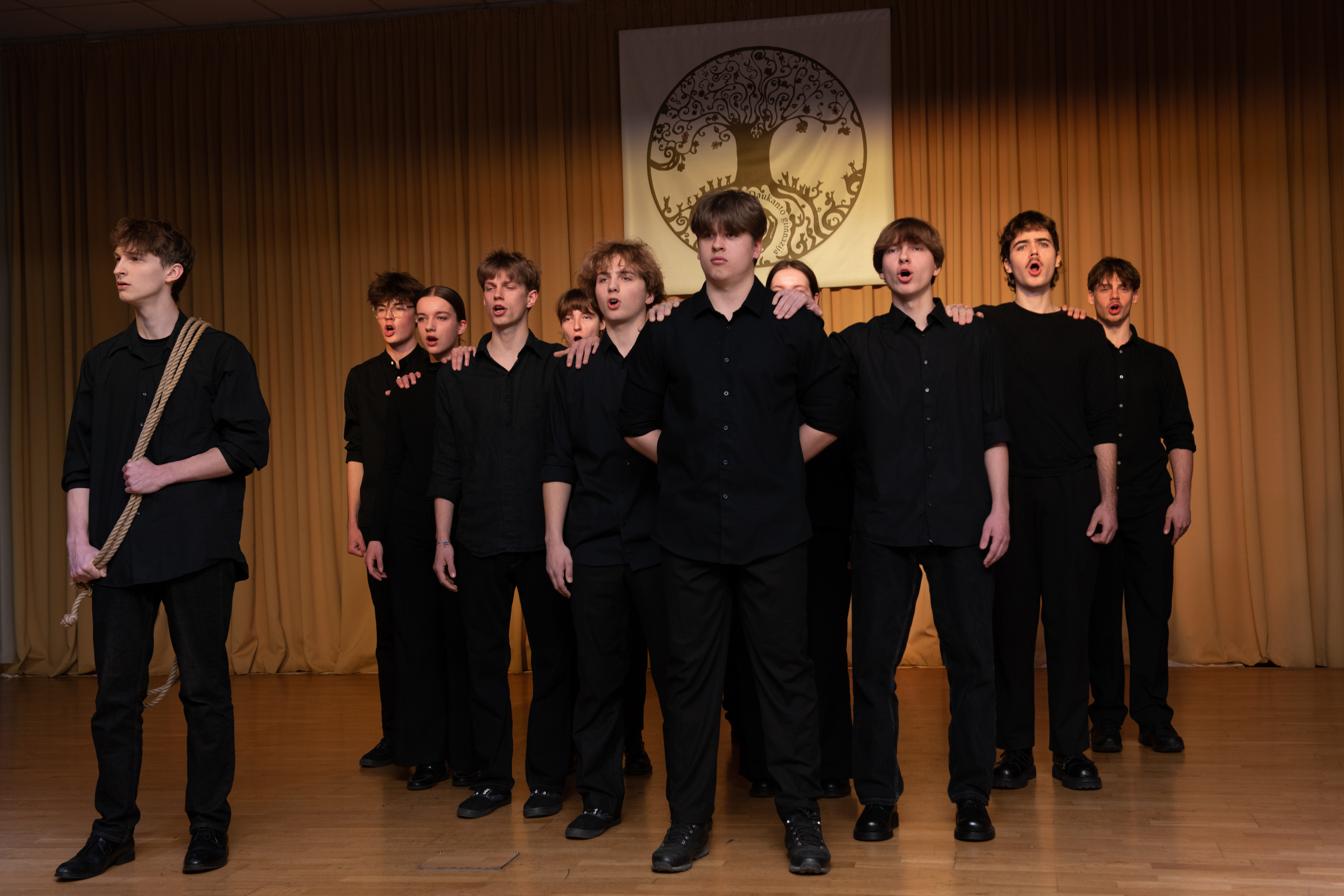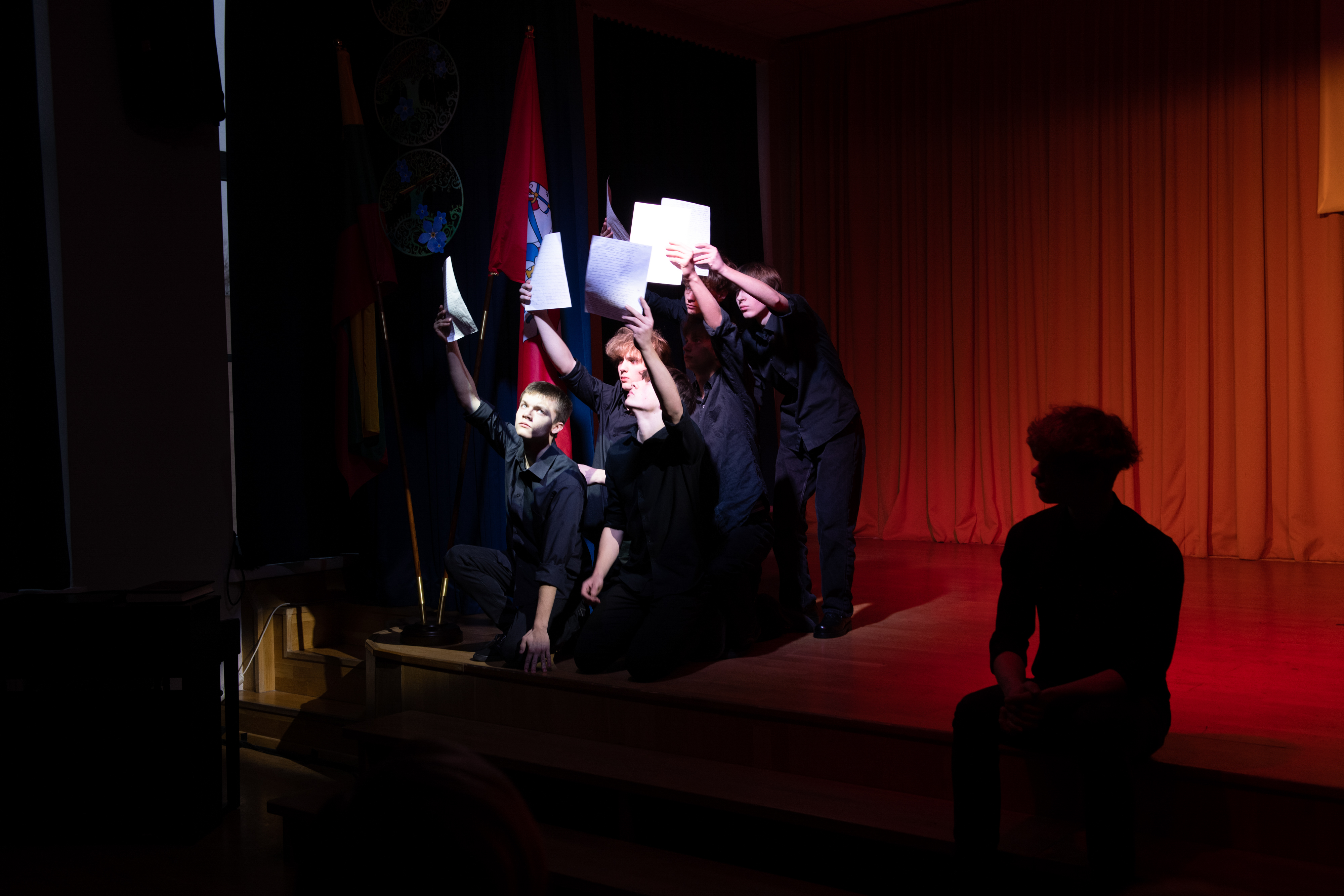 Vėliau gimnazijos mokinių atlikta meninė kompozicija papildė istorinį pasakojimą, o nuskambėjusios dainos priminė ir apie rimtį, ir apie atmintį, ir apie džiaugsmą gyvenant laisvoje valstybėje.