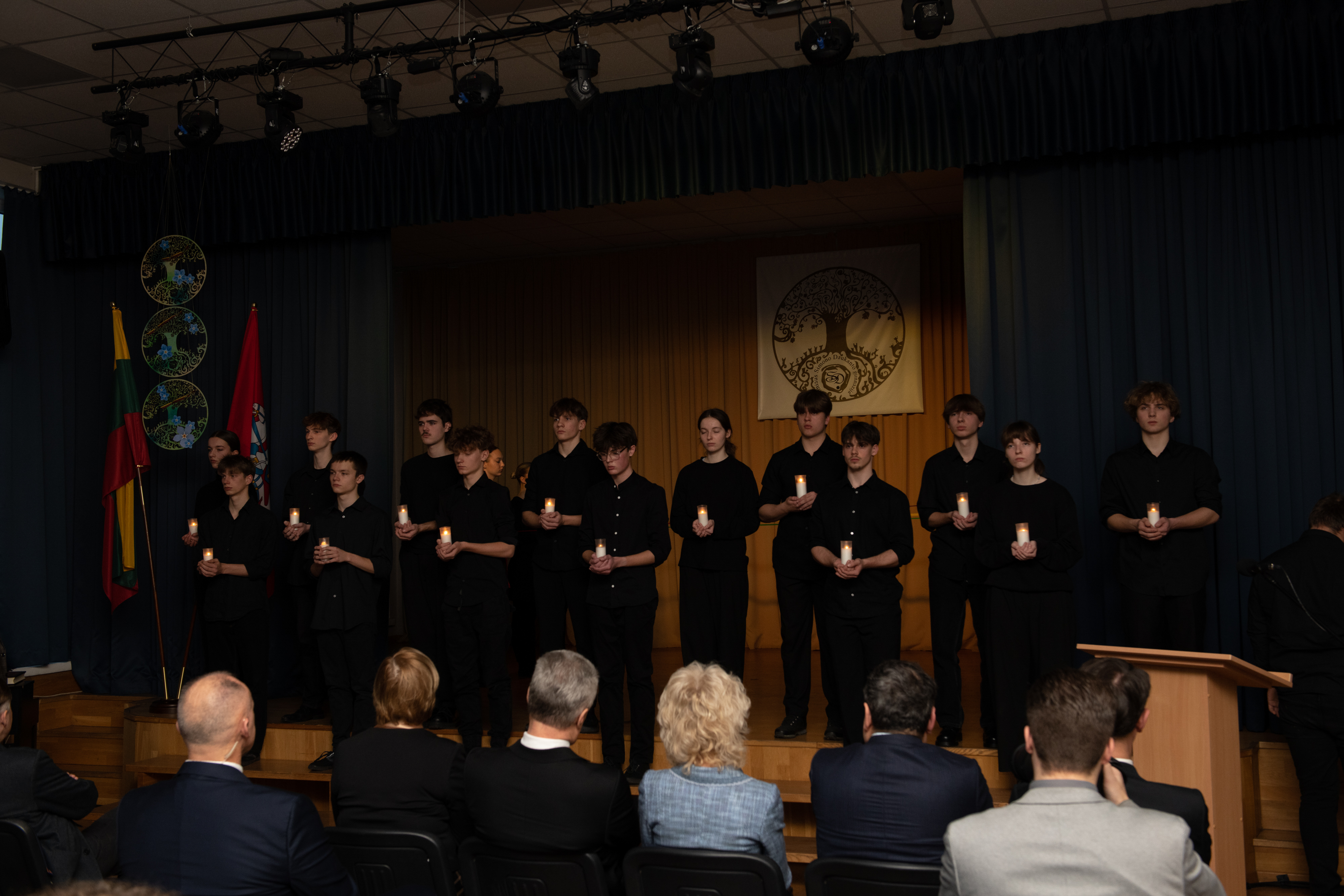 Renginys gimnazijoje prasidėjo žodžiais „Niekas negali nugalėti tautos, einačios į laisvę“. Atminties ir pergalės žvakutes uždegė gimnazijos direktorė Jolanta Knyvienė kartu su Lietuvos Respublikos Prezidentu Gitanu Nausėda ir Tarptautinės komisijos nacių ir sovietinio okupacinių režimų nusikaltimams Lietuvoje įvertinti direktoriumi Ronaldu Račinsku.